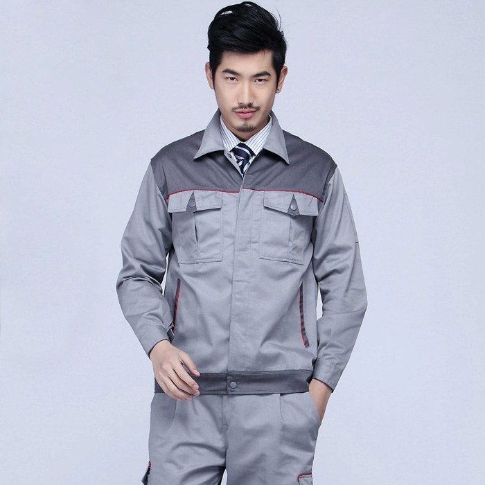 JL-QD258款是佳莉銷售有4年的經典款式,深受客戶的喜愛。此款以淺灰色為主色,胸前采用深灰色,紅色條紋撞色拼接,走線細致,實用性強。左中腰間口袋均采用雙層設計,傾斜線條,穩重大氣。不失單調,穿著有又舒服。